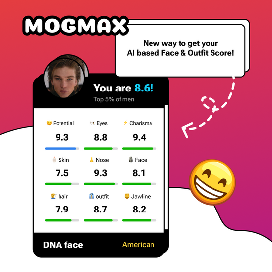 MogMax is an application that users can upload their photos and get scores by AI. The app use artificial intelligence (AI) algorithms to analyze certain data or inputs and provide users with a score or assessment related to various aspects.